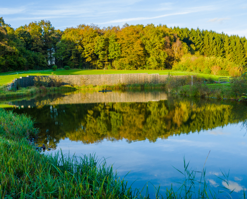 Stehen gerade keine Flüsse oder Seen zur Verfügung, bedarf es zur Beregnung einer Golfanlage künstlicher Lösungen. Zum Beispiel einen Beregnungsteich.